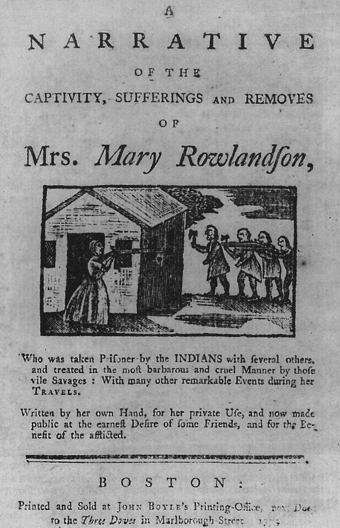 Rowlandson’s account is often considered the first “Indian captivity narrative” and established sort of a formula which would be copied by later captivity narrators. As a literary genre, the typical captivity narrative has three parts: