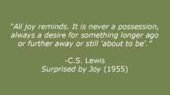 The theme of Lewis’s autobiography is that of Joy: his constant search for it in various places and things offered by the world. He remarks,
